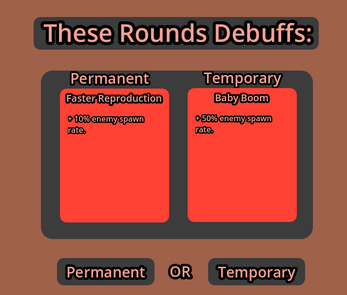 Every time you survived a round, you have to choose betwenn a little but permanent debuff or a bigger but temporary debuff.